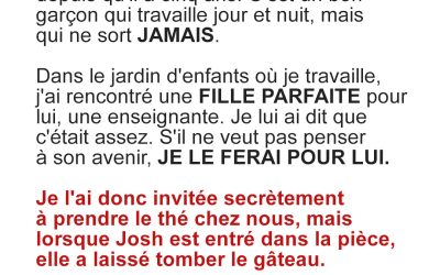 Je n’aurais jamais cru voir le jour où ma douce Pénélope me regarderait avec une telle déception dans les yeux.…