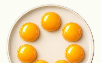 Au premier abord, l'image semble presque ludique. Une assiette propre est placée au centre d'un fond uni. Sept jaunes d'œufs…