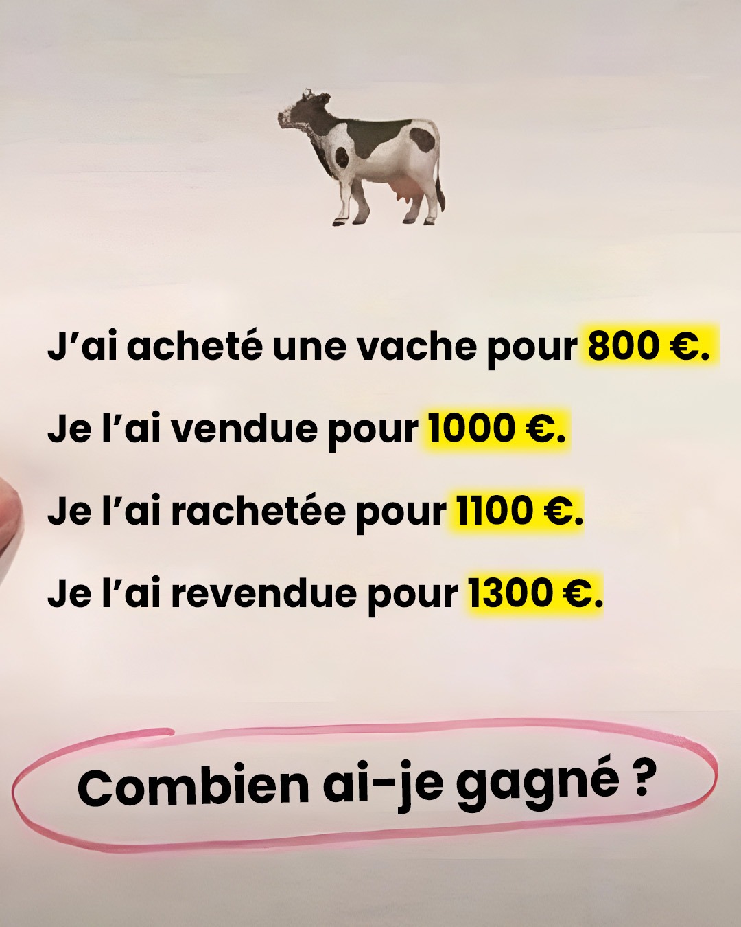 Vous aimez les petits défis qui font chauffer les neurones tout en vous amusant ? Ce puzzle mathématique autour d’une vache circule activement sur les réseaux sociaux depuis plusieurs semaines. À première vue, il semble simple. Mais au fil des chiffres… la confusion s’installe. Alors, êtes-vous prêt(e) à relever le défi ? On parie que vous allez vouloir le résoudre autour d’un café avec vos amis !